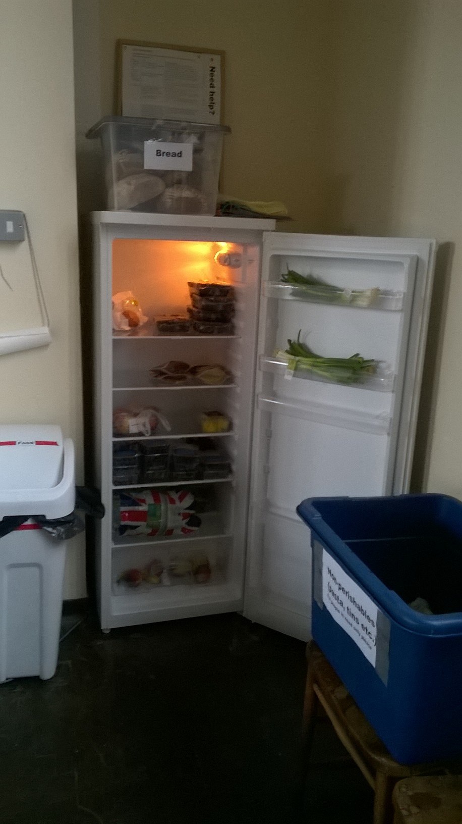 The fridge is getting food twice a week from Tesco/FareShare, and we hope to start getting deliveries from the Coop soon. The paperwork is all going well, although (unsurprisingly) a lot of the food that is taken isn’t recorded. It’s no real problem unless we have to recall an item. The volunteer team that keeps the fridge clean is wonderful.